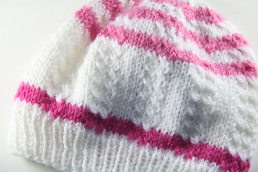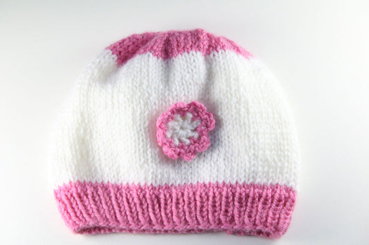 AusverkauftPuderrosa-weiße Baby-Bommelmütze