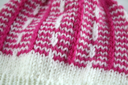 Weiß-rosa Babybommelmütze