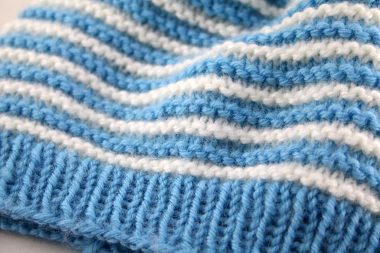 Blau-weiß gestreifte Kindermütze