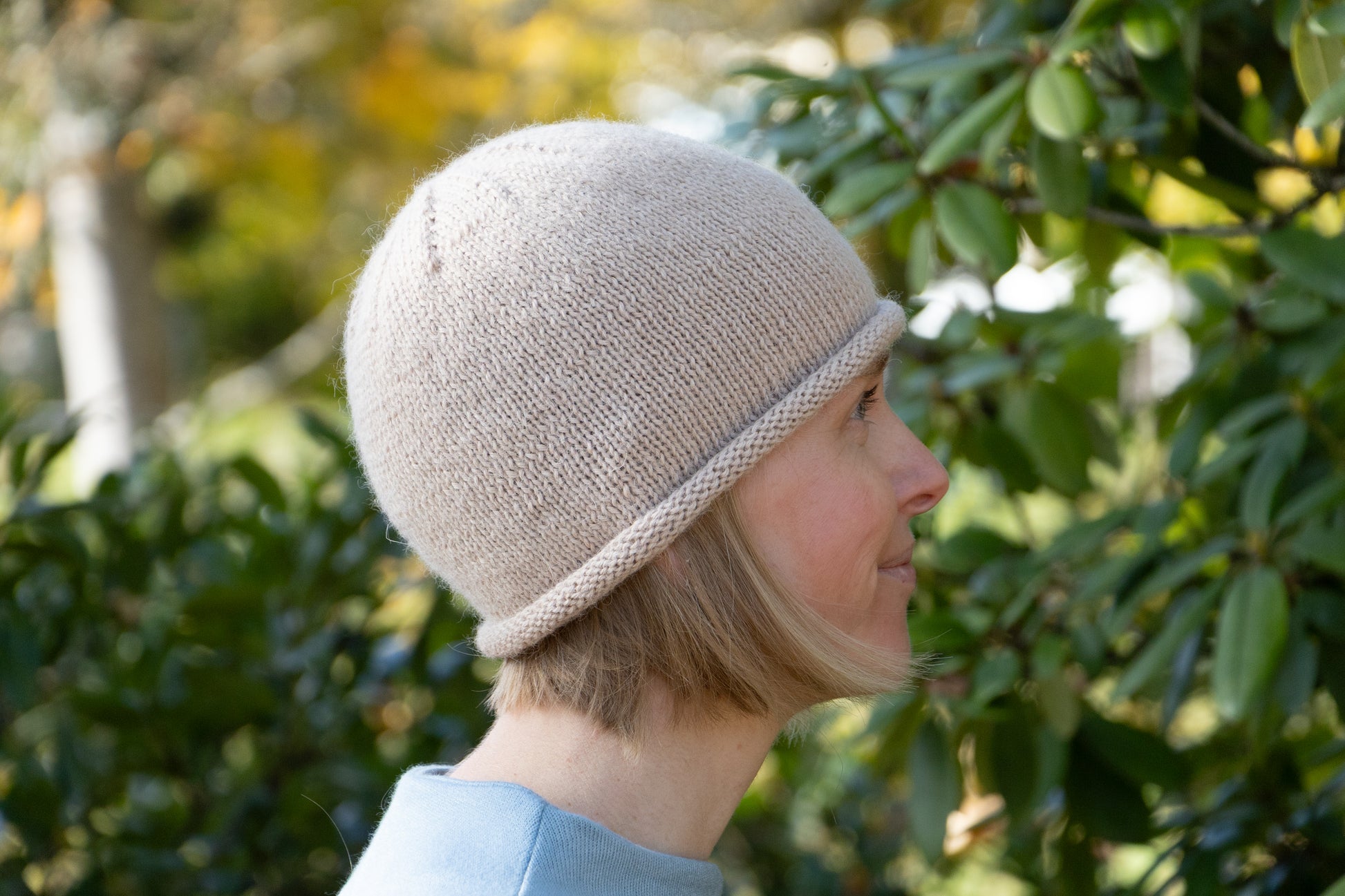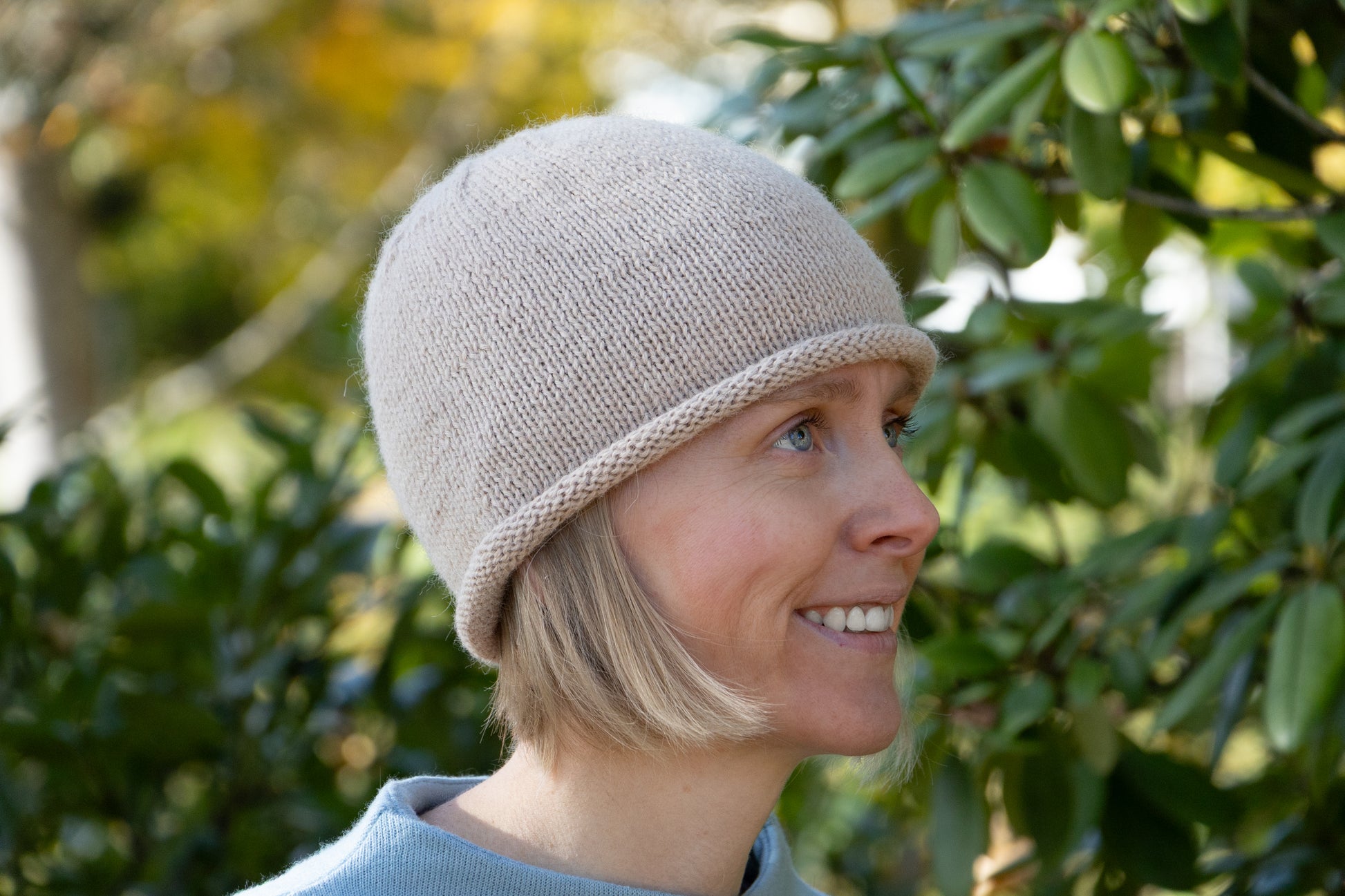 Beigefarbene Rollrandmütze