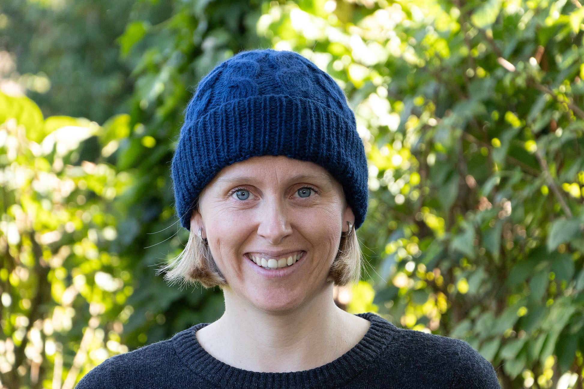 Mit Liebe gestrickte marineblaue Mütze aus Schurwolle und Alpaka.